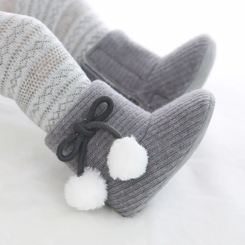 Cute Winter Soft Plush Baby Booties Infant Anti Slip Snow Boots Warm Ball Baby Girl Boy Soft Sole Boots